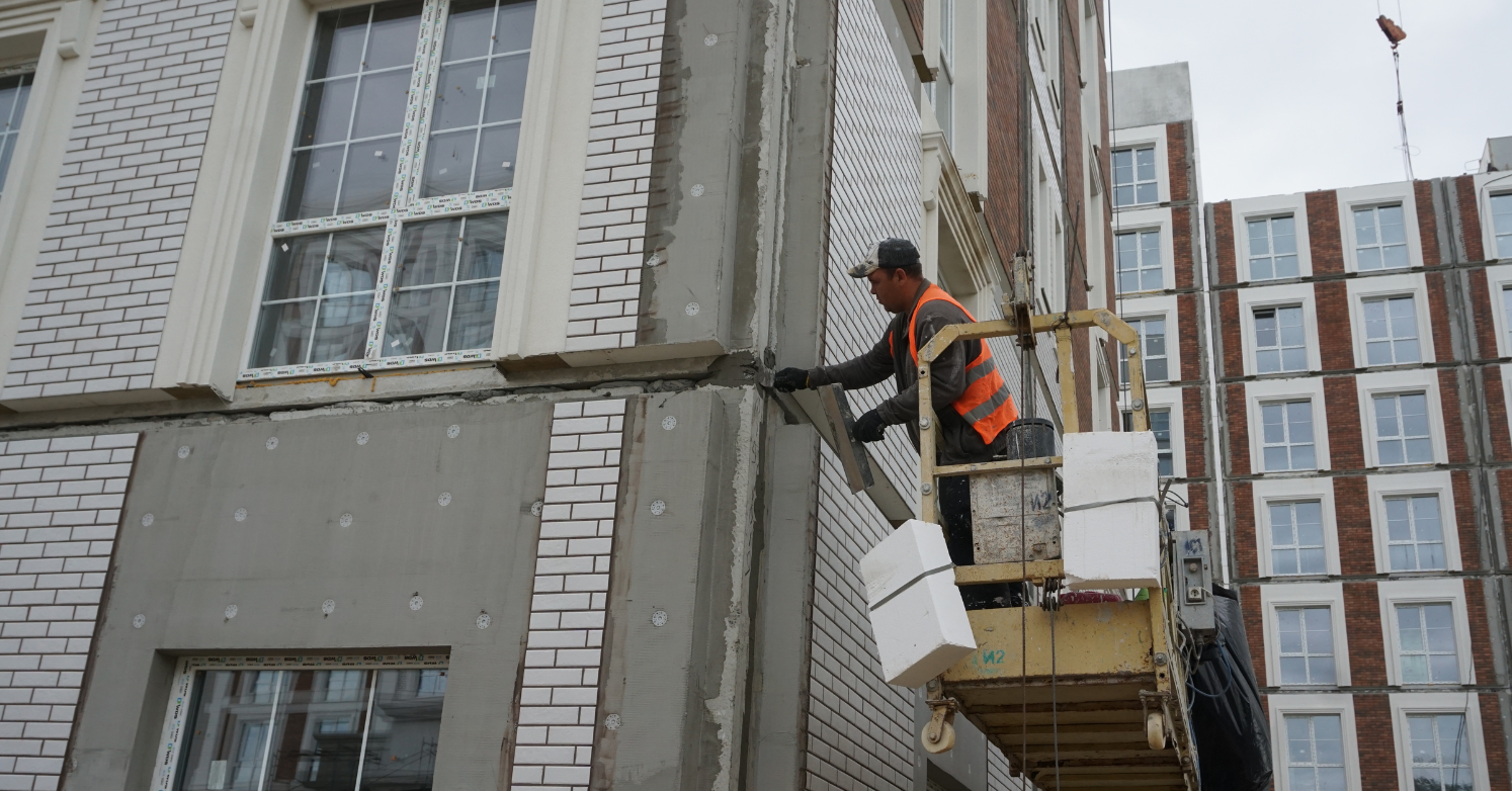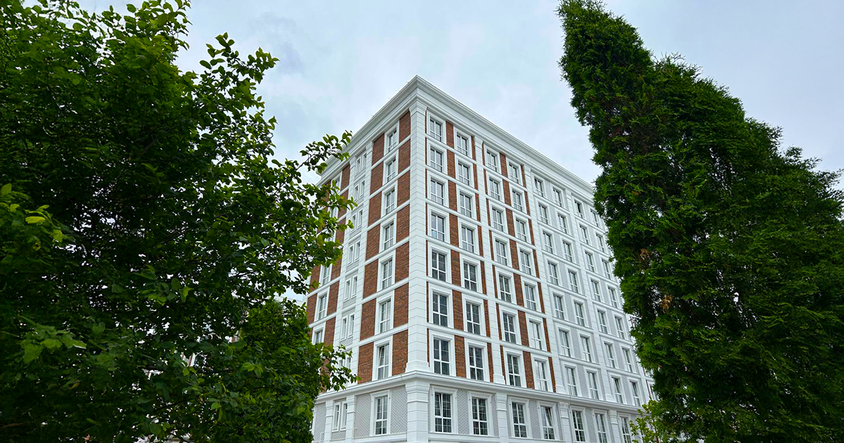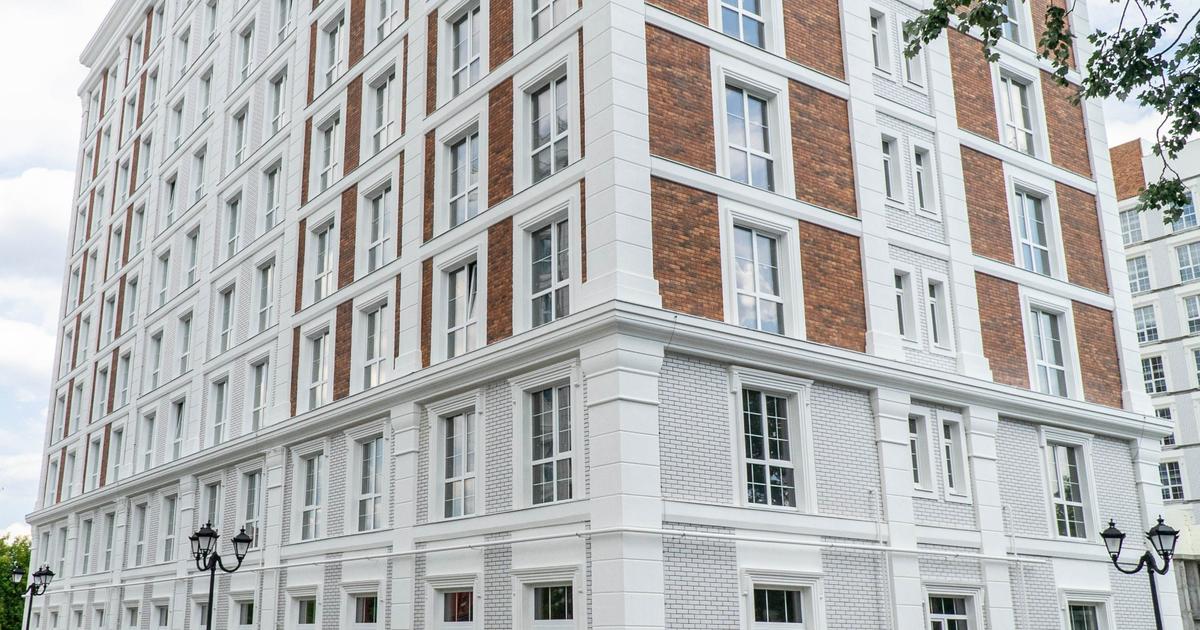Фасади будинків оздоблені клінкерною плиткою, що надає будинкам вишуканого вигляду. Зустрічають своїх мешканців величні колони на головних входах до будинків.